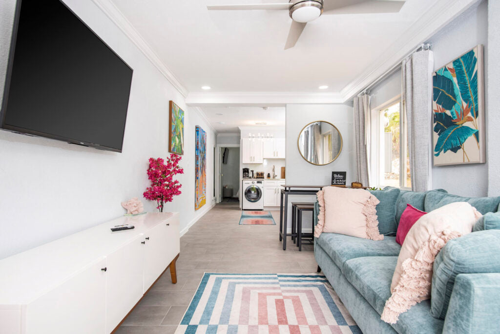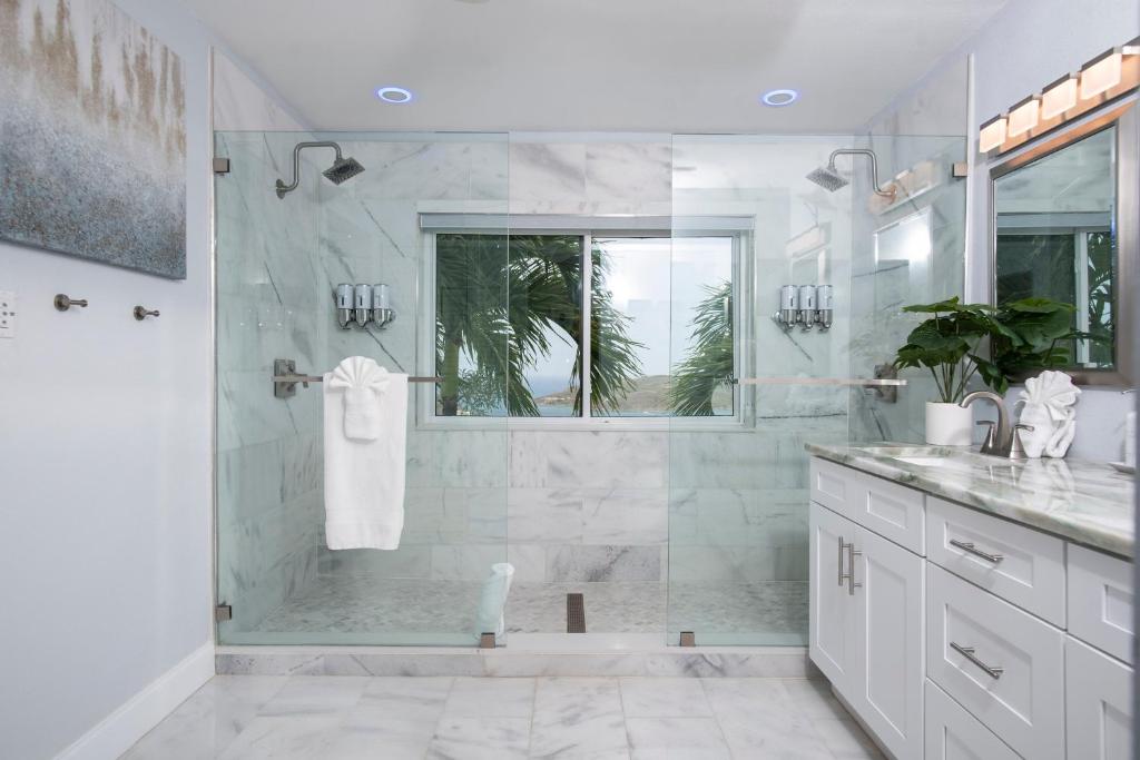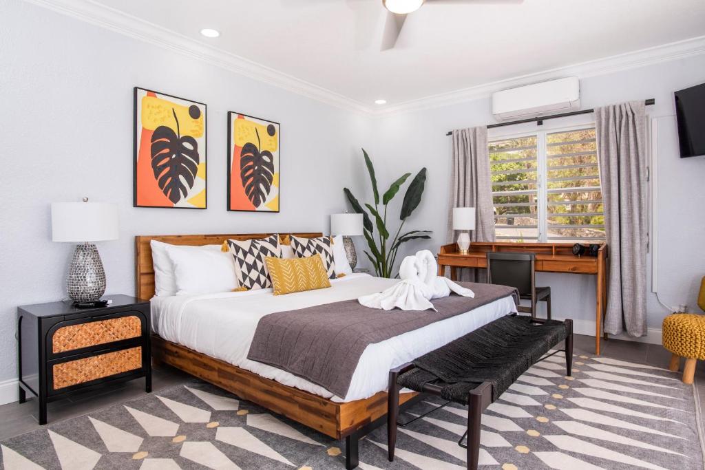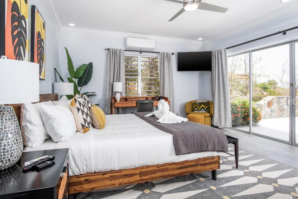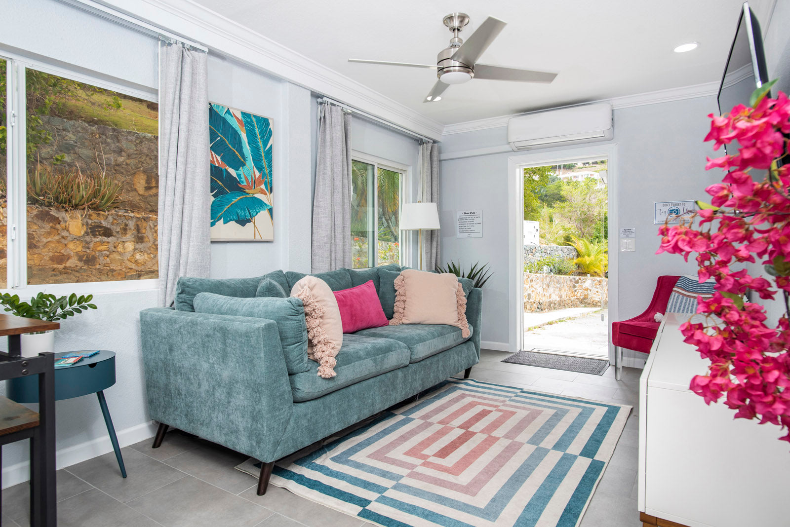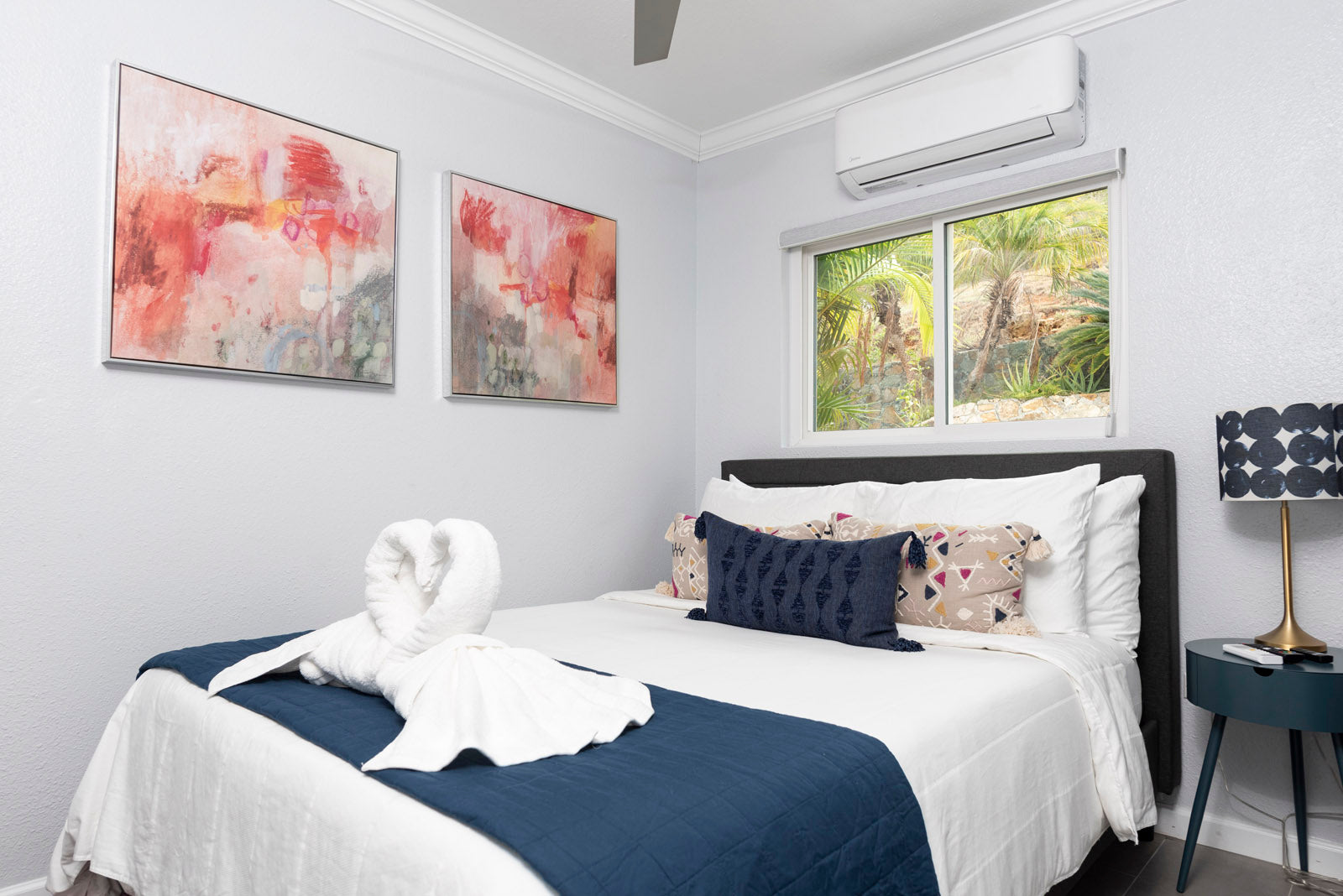 Villa 3 features a one bedroom with king size bed, luxury sleeper sofa and one double sink bathroom. Fully equipped kitchen with AC units throughout.